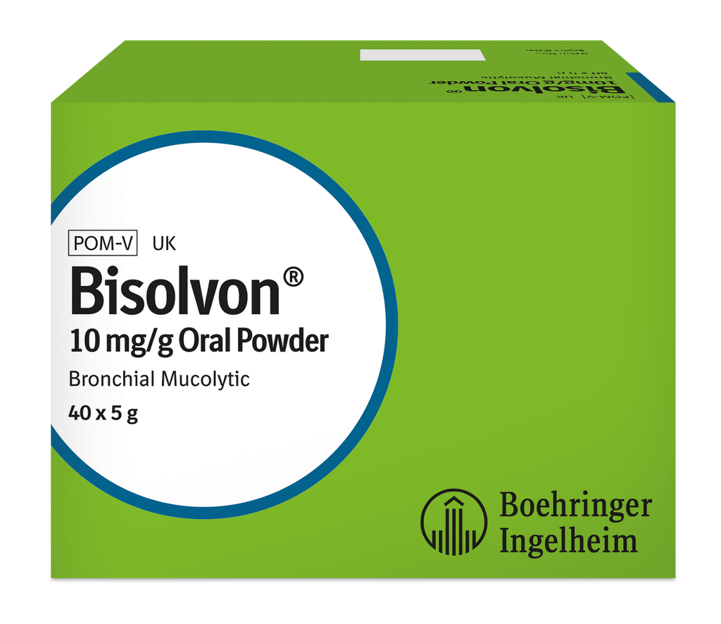 Bisolvon® is a 10 mg/g oral powder available in 5 g sachets. It is usually administered by adding it to either food or drinking water immediately before the food is to be eaten or the water drunk. Though please consult with your prescribing vet in order to follow the best procedure for your pet.