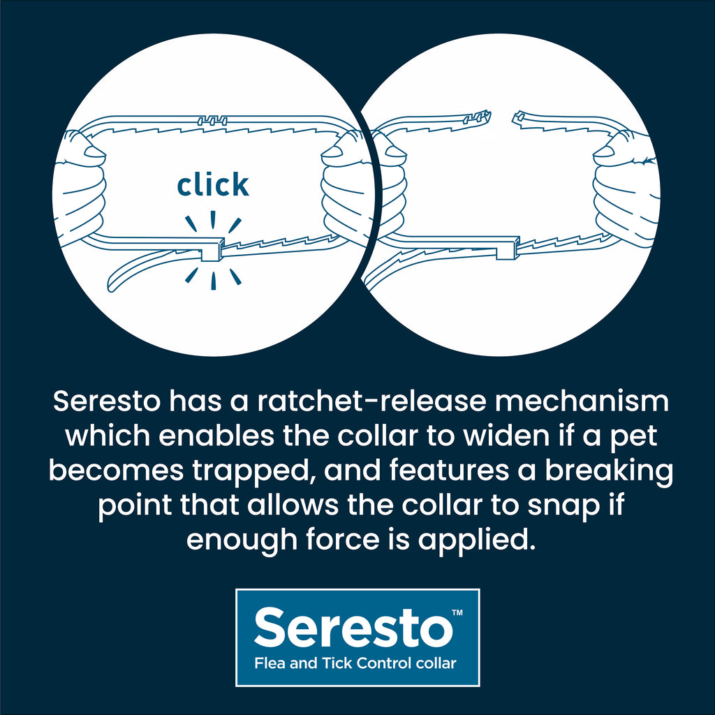 The Seresto Cat Collar protects your cat for up to 8 months against fleas, tick, larvae and lice. The collar releases its active ingredients at a slow and steady rate, and is able to kill fleas and repel biting lice.